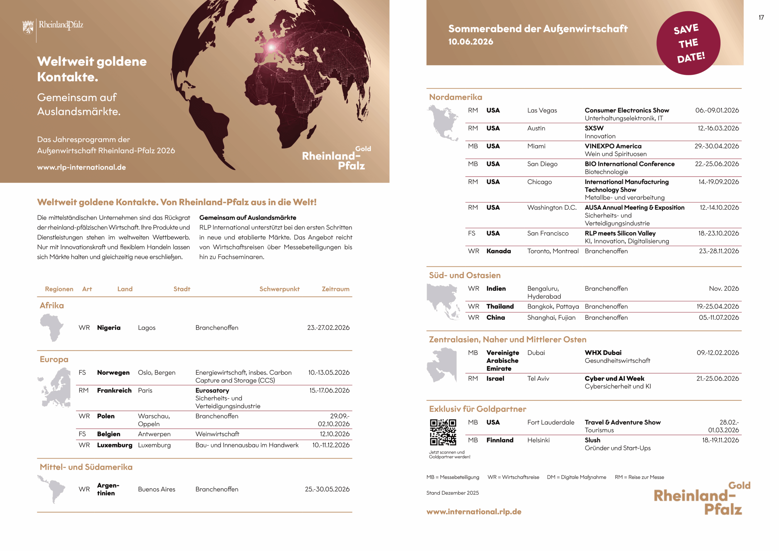 Mit der neuen Ausgabe des Magazins der Außenwirtschaft Rheinland-Pfalz International wird das Jahresprogramm 2026 vorgestellt und bietet Unternehmen einen umfassenden Überblick über die geplanten Aktivitäten der Außenwirtschaftsförderung im kommenden Jahr.